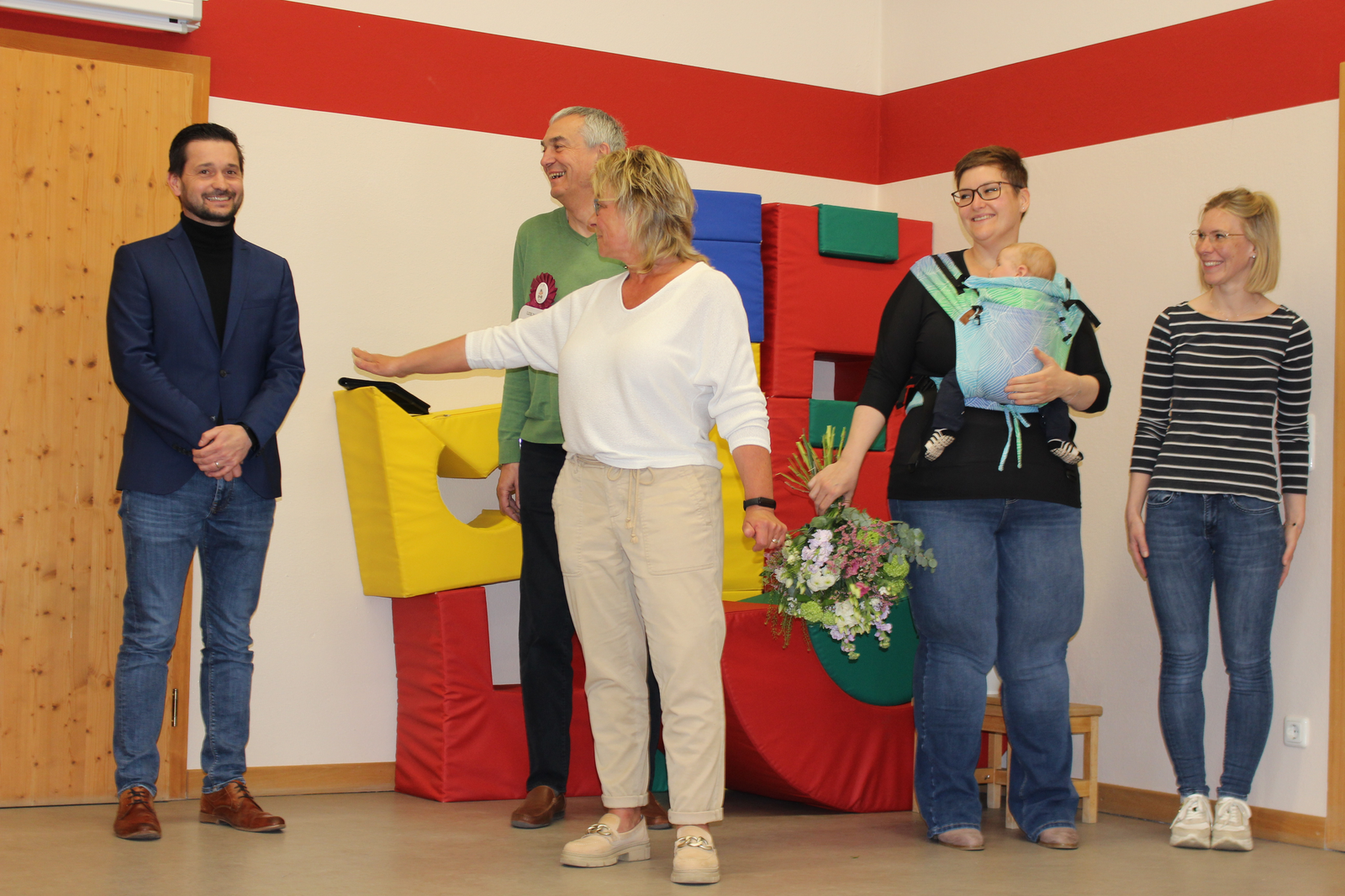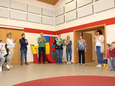 Im Kindergarten „Fridolins Kindernest“ in Sandharlanden wurde am Donnerstag (4. Mai 2023) Kinderpflegerin Angelika Zinner in den Ruhestand verabschiedet. Seitens der Stadt Abensberg dankte Hauptamtsleiter Andreas Müller herzlich für ihre geleistete Arbeit zum Wohle der Kinder und überreichte ihr einen Blumenstrauß. Personalleiter Franz Piendl sagte, sie sei „immer einsatzbereit“ gewesen und habe, wenn Not herrschte, stets ausgeholfen. Das sei nicht selbstverständlich. Kindergartenleiterin Birgit Firth dankte der Kollegin für ihre Zuverlässigkeit und ihren liebevollen Umgang mit den Kindern – und auch mit dem Team.