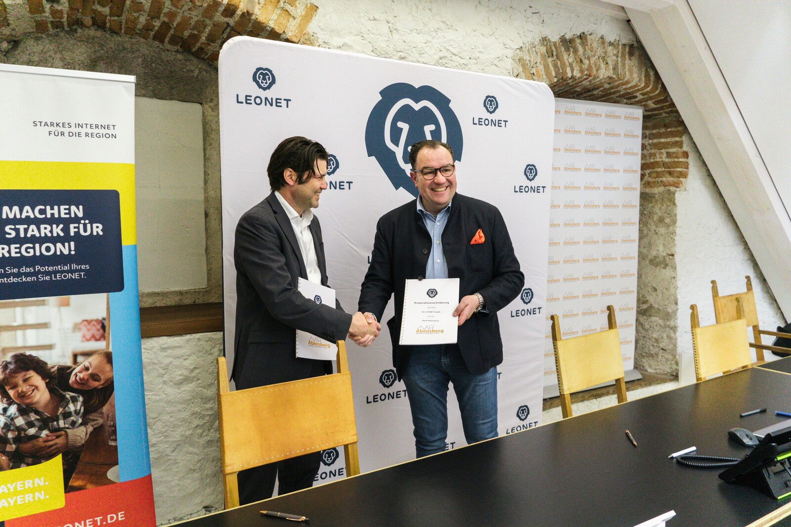 Das bayerische Telekommunikationsunternehmen LEONET wird in der Stadt Abensberg großflächig ein Glasfasernetz errichten. Hierfür haben Abensbergs 1. Bürgermeister Dr. Bernhard Resch und LEONET-Geschäftsführer Martin Naber nach entsprechenden Beschlüssen am 22. Februar 2024 einen Kooperationsvertrag zum Glasfaserausbau unterzeichnet. Insgesamt können knapp 4.200 Gebäude mit rund 6.400 Haushalten und Gewerbetrieben von dem Vorhaben direkt profitieren. LEONET hatte sich im Rahmen eines offiziellen Markterkundungsverfahrens (Gigabit 2.0) beworben und den Zuschlag erhalten.