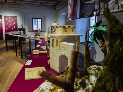 Einen besonderen Fokus setzt die Ausstellung natürlich auf das Geburtstagskind des Jahres: Den Abensberger Krippen- und Kapellenverein St. Ägidius und Freunde von St. Gilles. Und wie der Name des Vereins vermuten lässt: Das Tätigkeitsfeld ist groß. Neben der Vereinshistorie und den Krippenbauern finden in der Ausstellung anlässlich des 25 jährigen Vereinsjubiläums auch die Gillamoos-Kapelle, die Städtepartnerschaft mit St. Gilles in Frankreich sowie mit dem Heiligen Ägidius auch dessen Namensgeber ihren Platz. Die Historie beginnt mit der sogenannten Kaiserkrippe von Sebastian Osterrieder – und damit gleich mit einer ungeklärten Frage. Denn ob es sich bei genau diesem Exemplar der Prunkstall-Krippe wirklich um das handelt, das zu Weihnachten beim deutschen Kaiser stand, ist nicht eindeutig belegt. Doch genau das macht das Objekt so spannend.