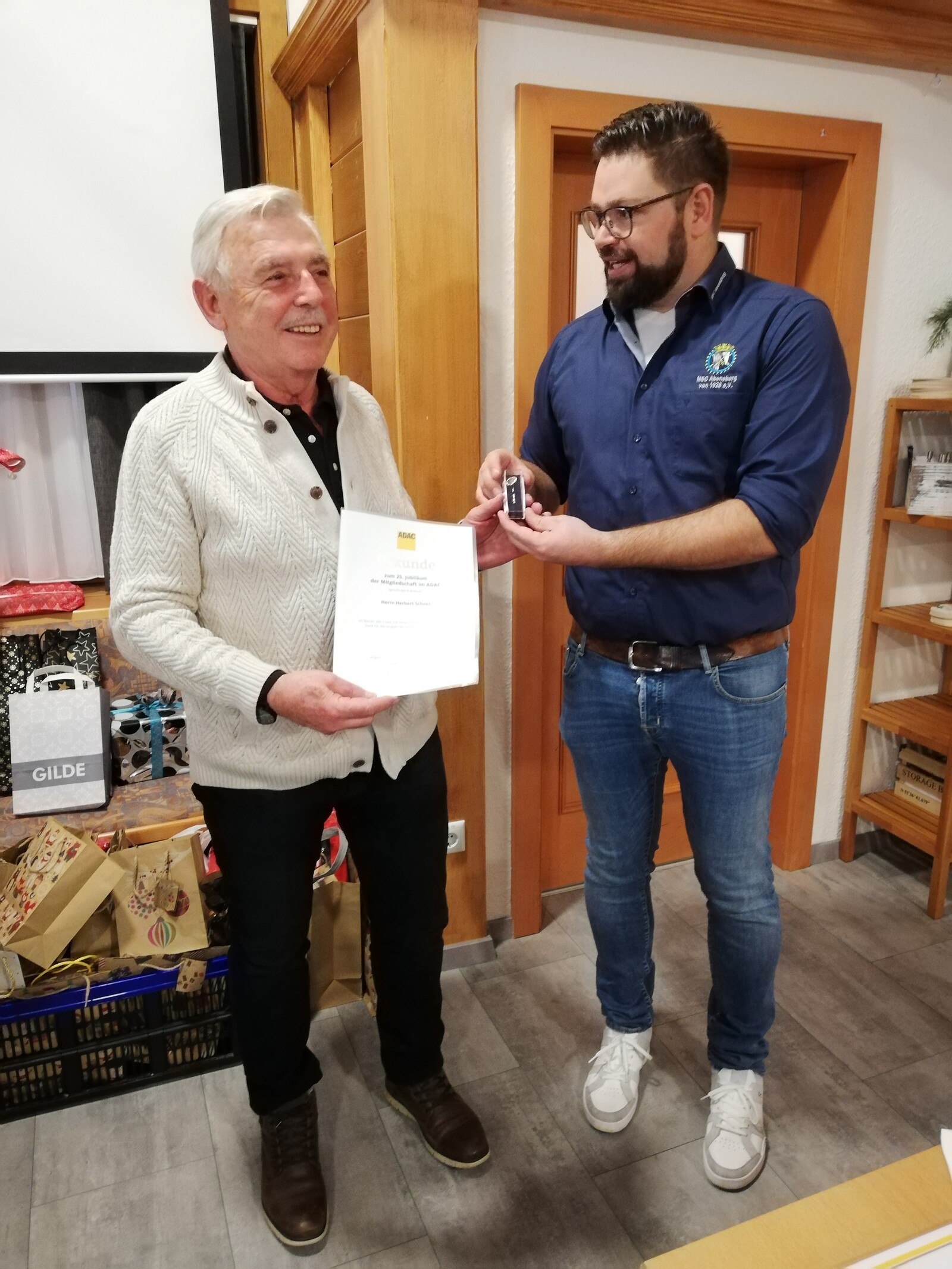 „Das Gelingen unserer beiden Rennen hing heuer auch zu einem entscheidenden Teil mit dem großen Einsatz von Walter Scheck zusammen. Er bereitete die Bahn in unzähligen Stunden so vor, dass wir unfallfreie und sportlich hochwertige Rennen sehen konnten,“ so Pecher. Dem folgten zwei weitere Auszeichnungen. Herbert Scheer und Wolfgang Glas erhielten aus den Händen Pechers ihre Urkunden für 25-jährige bzw. 50-jährige Mitgliedschaft im ADAC.