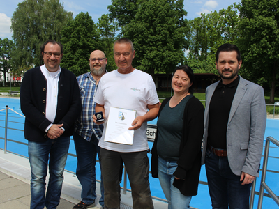 „Bitte mach noch viele Jahre weiter“, so Hauptamtsleiter Müller, der um die Geschichte wusste: „Du bist ja schon immer hier“, sagte er schmunzelnd. Personalkonstanz sei wichtig, und im Freibad gibt es – was viele nicht ahnen – einige technische Herausforderungen. Offensichtlich wurde das beim Fest anlässlich des 50-jährigen Bestehens des Freibads in 2015, als Meier Führungen anbot. „Die Leute waren erstaunt, was alles im Hintergrund läuft, bis wir öffnen können.“ Auch die Personalratsvorsitzende Melanie Schlauderer und der kaufmännische Leiter der Stadtwerke, Heribert Eichstädter, gratulierten Meier und wünschten ihm – und wohl auch der Stadt Abensberg – noch viele weitere Jahre.