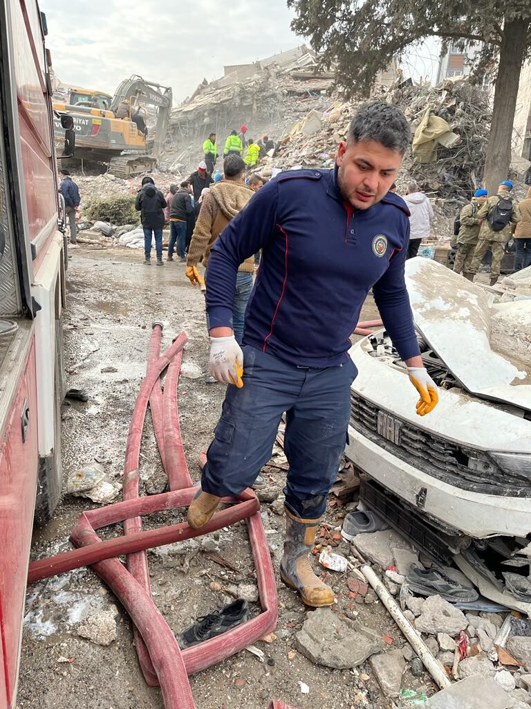 Sofort wurde er mit einer persönlichen Schutzausrüstung ausgestattet und unterstützte die türkischen Kollegen. Auf Grund seiner Sprachkenntnisse Deutsch/Arabisch/Türkisch konnte er auch in vielen Situationen dolmetschen. Gegen Dienstagabend wurde er extra angefordert, da die ersten Hilfskräfte aus Deutschland in Kahramanmaras eingetroffen waren und eingewiesen werden mussten. Diese waren sichtlich überrascht, dass er neben deutsch auch bayerisch sprach.