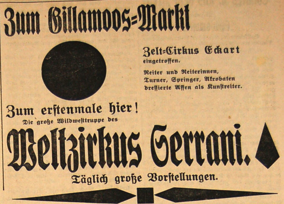 Um 1900 erscheint der Kinematograph als der letzte Schrei, in den 20er Jahren lösten ihn dann Kino-Theater Vorführungen ab. Klassische Schaustellungen sind heute teilweise aus der Mode gekommen. Weder bringt der „Elektro John“ Glühbirnen mit dem Mund zum Leuchten, noch zeigen Cinematographen „Maria Stuart“. Das Kasperltheater der Familie Richter allerdings, das ist heute genauso beliebt auf dem Gillamoos wie Ende des 19. Jahrhunderts.